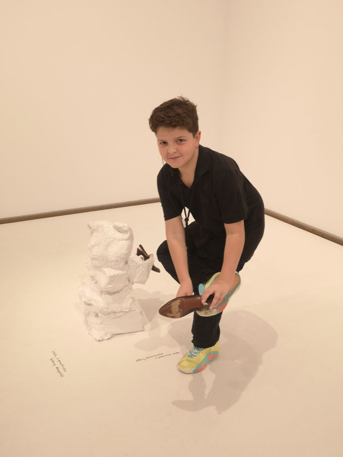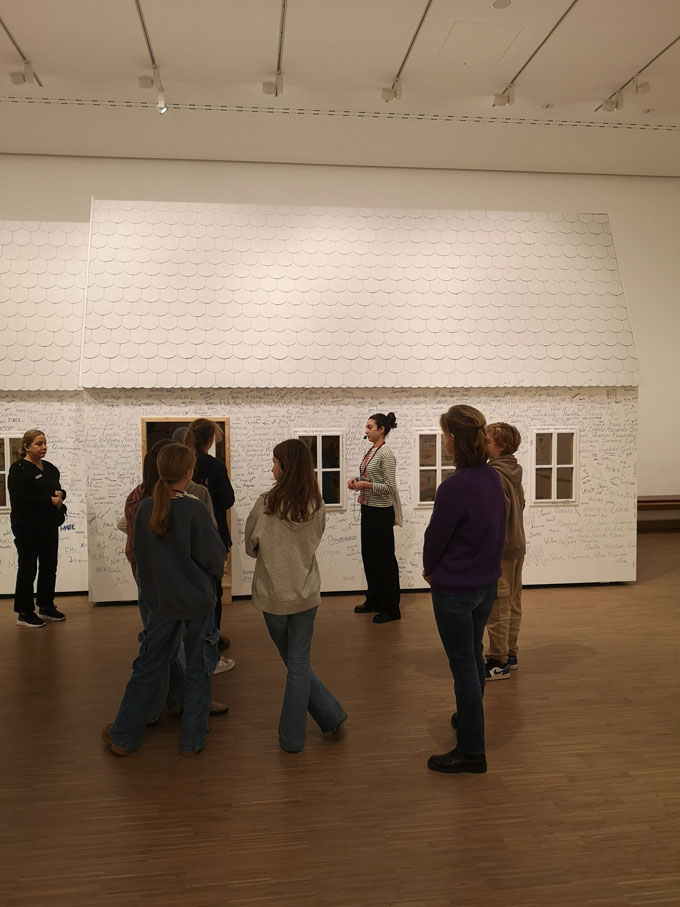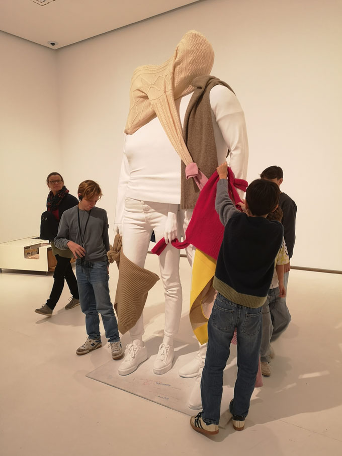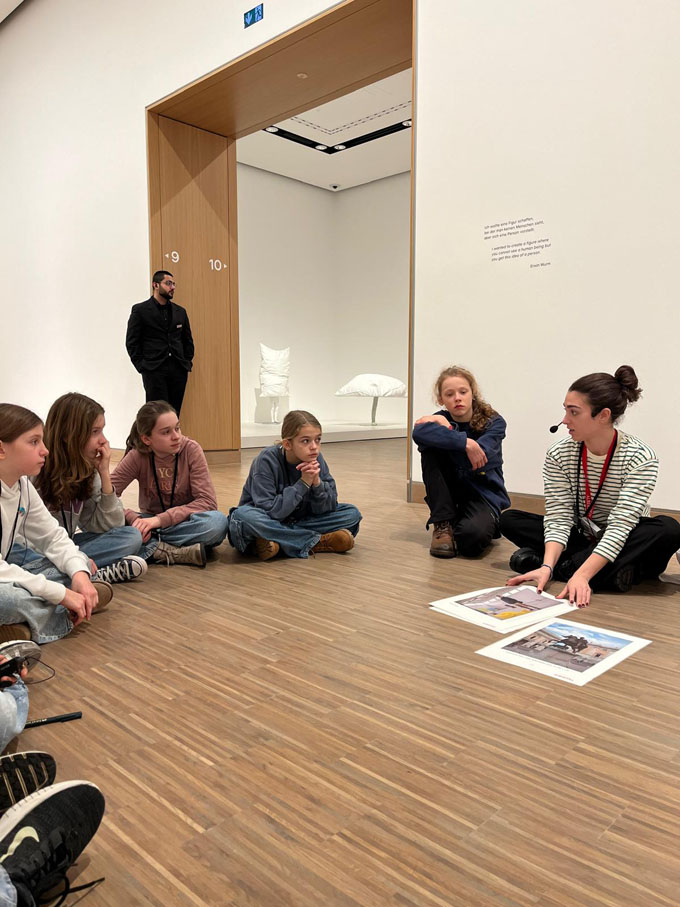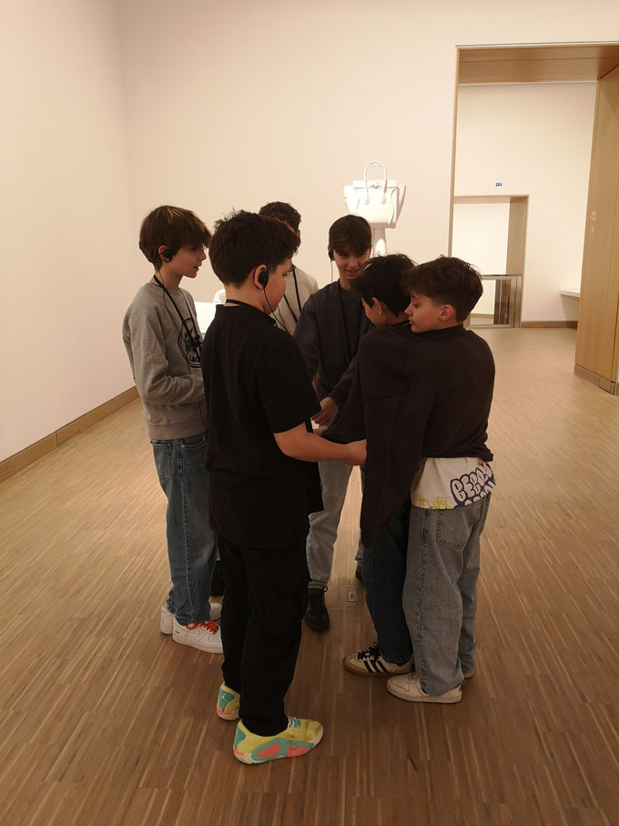 Zunächst erhielten sie eine Führung mit Informationen über den Künstler und einige seiner Werke. Dabei konnten sie eine praktische Übung zur Volumensausdehnung mit einem Pullover durchführen.