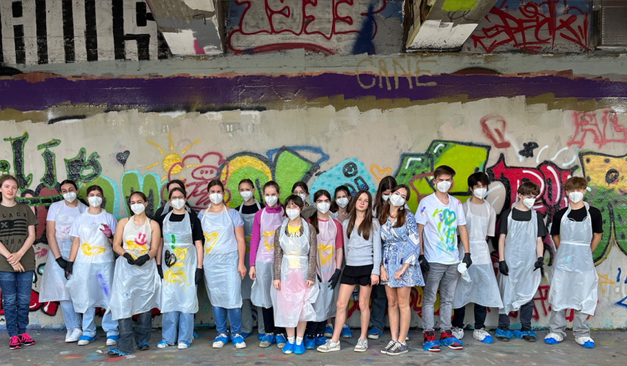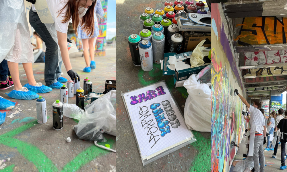 Darauf folgten Erläuterungen zur Handhabung der Sprühdosen und der verschiedenen Sprühköpfe (Caps) in praktischer Anwendung. Nach einer kurzen Übungsphase wurde sofort mit der Umsetzung der vorbereiteten Entwürfe des eigenen Namens im Wildstyle, an der 20 Meter langen offiziellen Graffiti-Wand, am Donaukanal begonnen. Es waren bunte, inspirierende Stunden!
