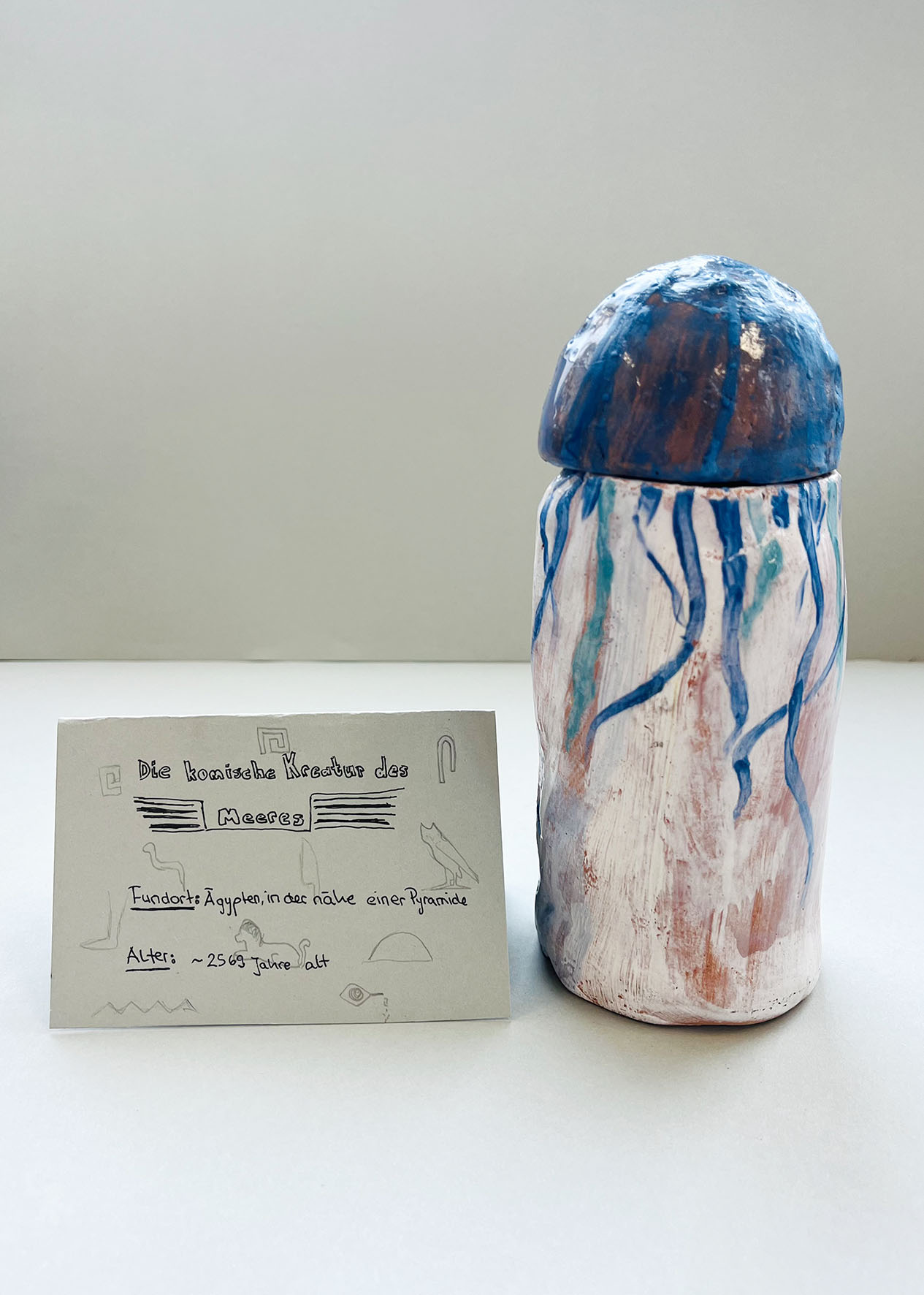 Nach einem Besuch der Ägyptischen Sammlung im KHM gestalteten die Schüler:innen der 2. Klassen ihre eigenen, ganz persönlichen Kanopen.