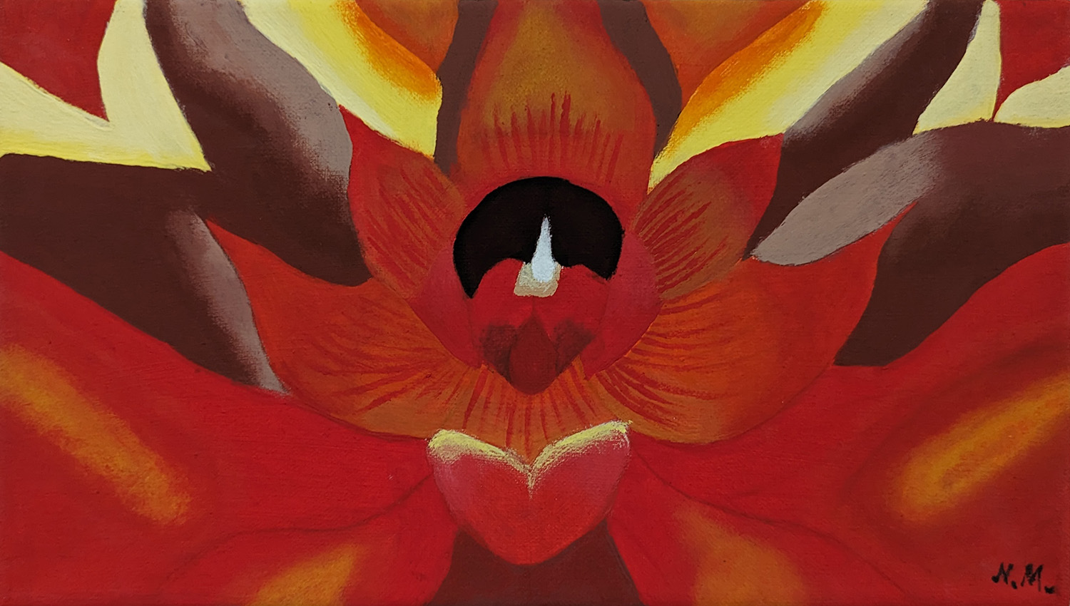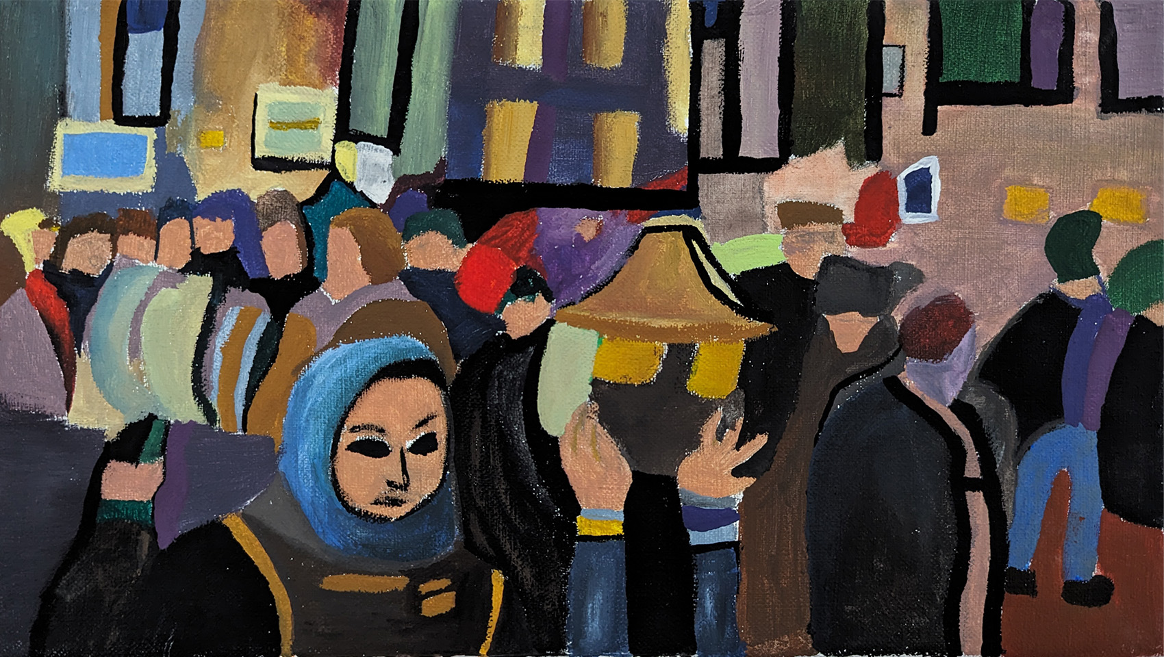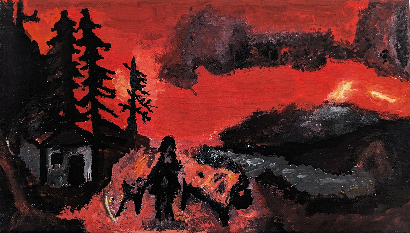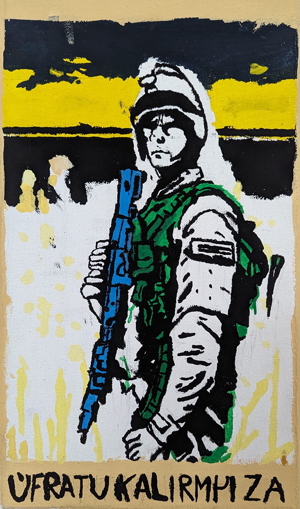 Im praktischen Teil der Arbeit wurde mithilfe von künstlicher Intelligenz durch einen Prompt ein Bild erzeugt. Dieses Bild diente als Vorlage für eine Malerei, die als „Rückfälschung“ auf Leinwand übertragen wurde. Stilistisch waren als Vorlage Kunstschaffende zu wählen, deren Werke inhaltlich auf, zu der damaligen Zeit aktuelle, gesellschaftliche oder politische Themen Bezug nehmen. Ausgehend von diesem Werk wurde der Stil aus dem historischen Kontext gerissen und auf gegenwärtige Krisen angewandt.