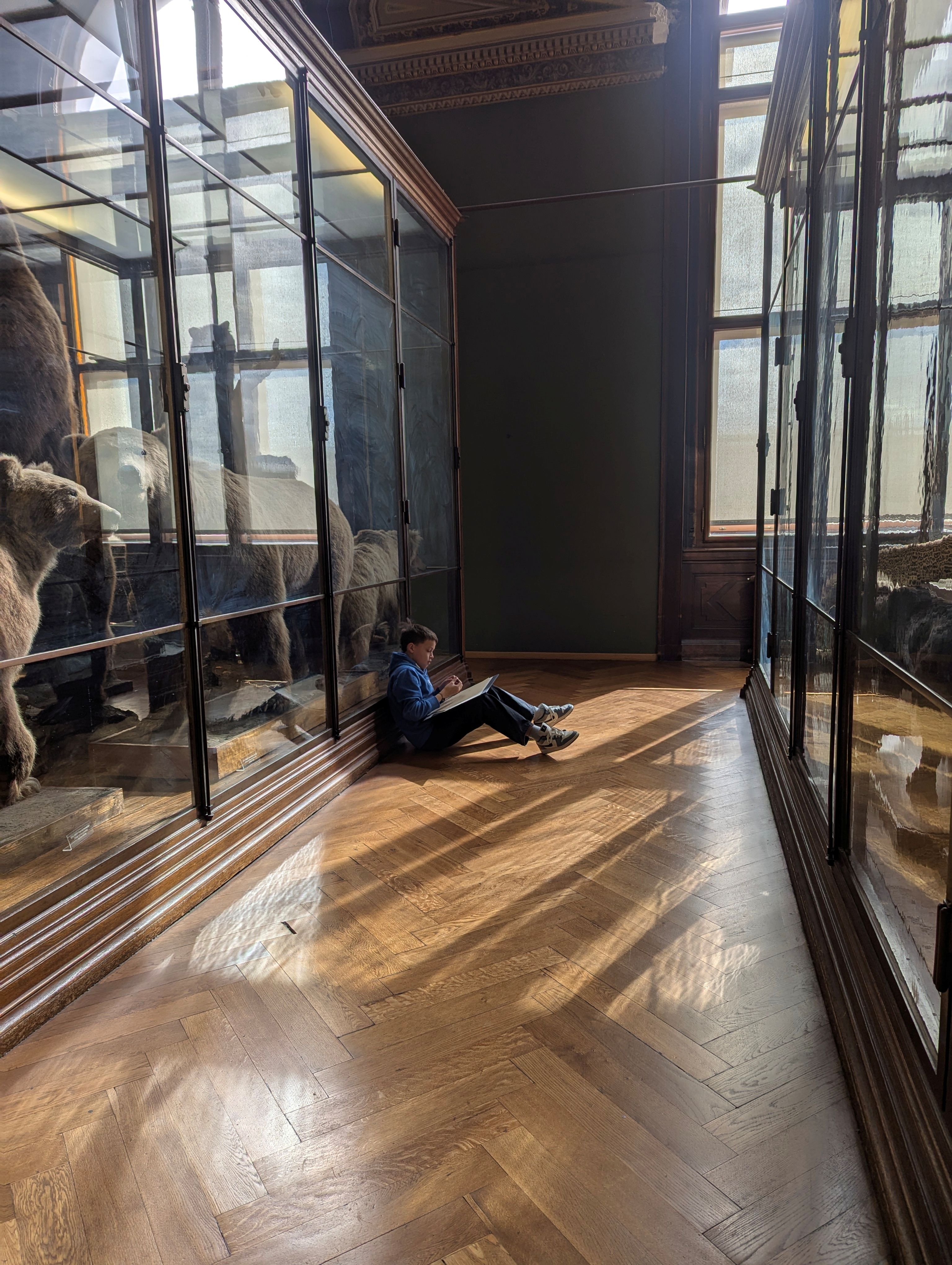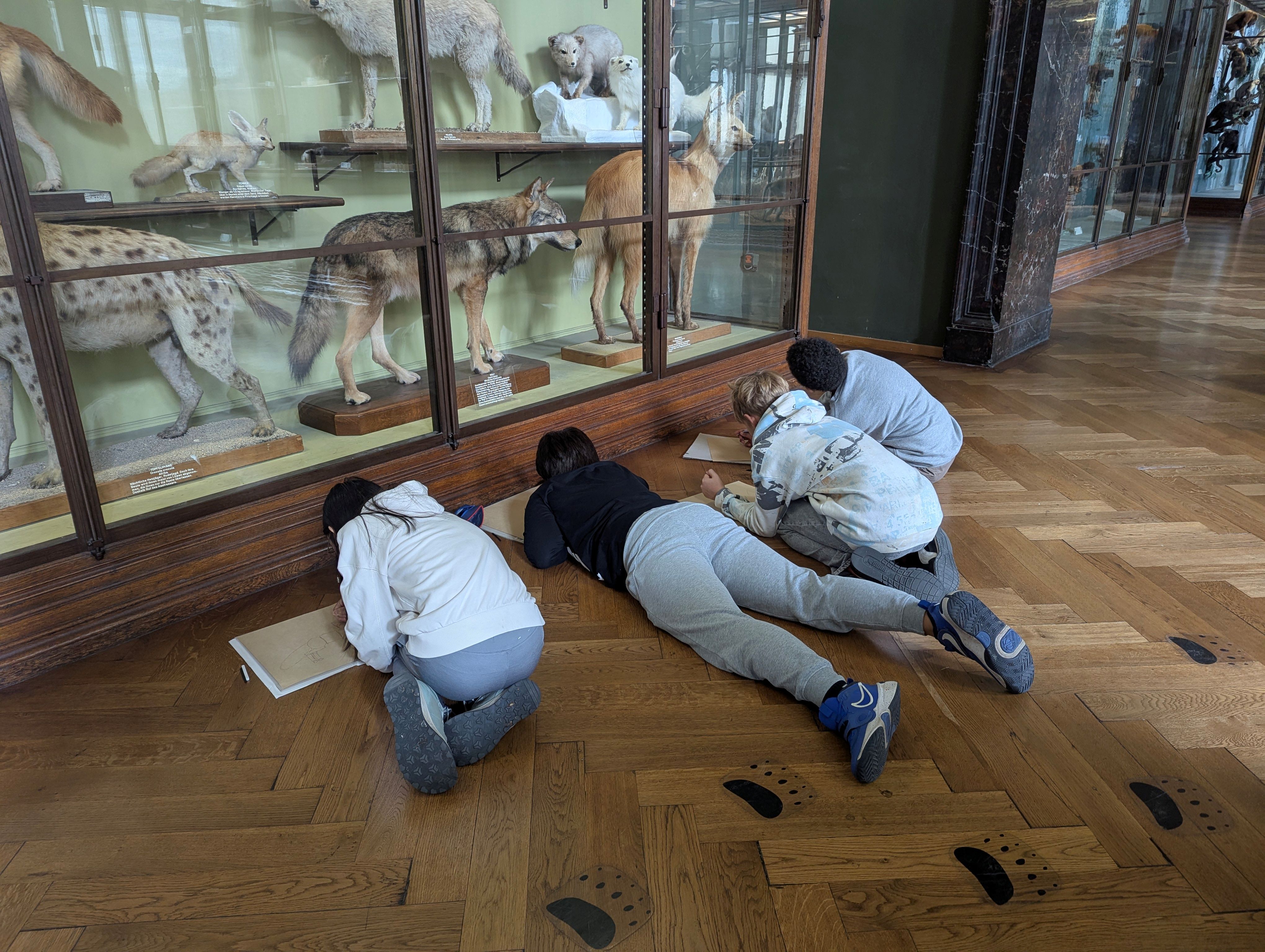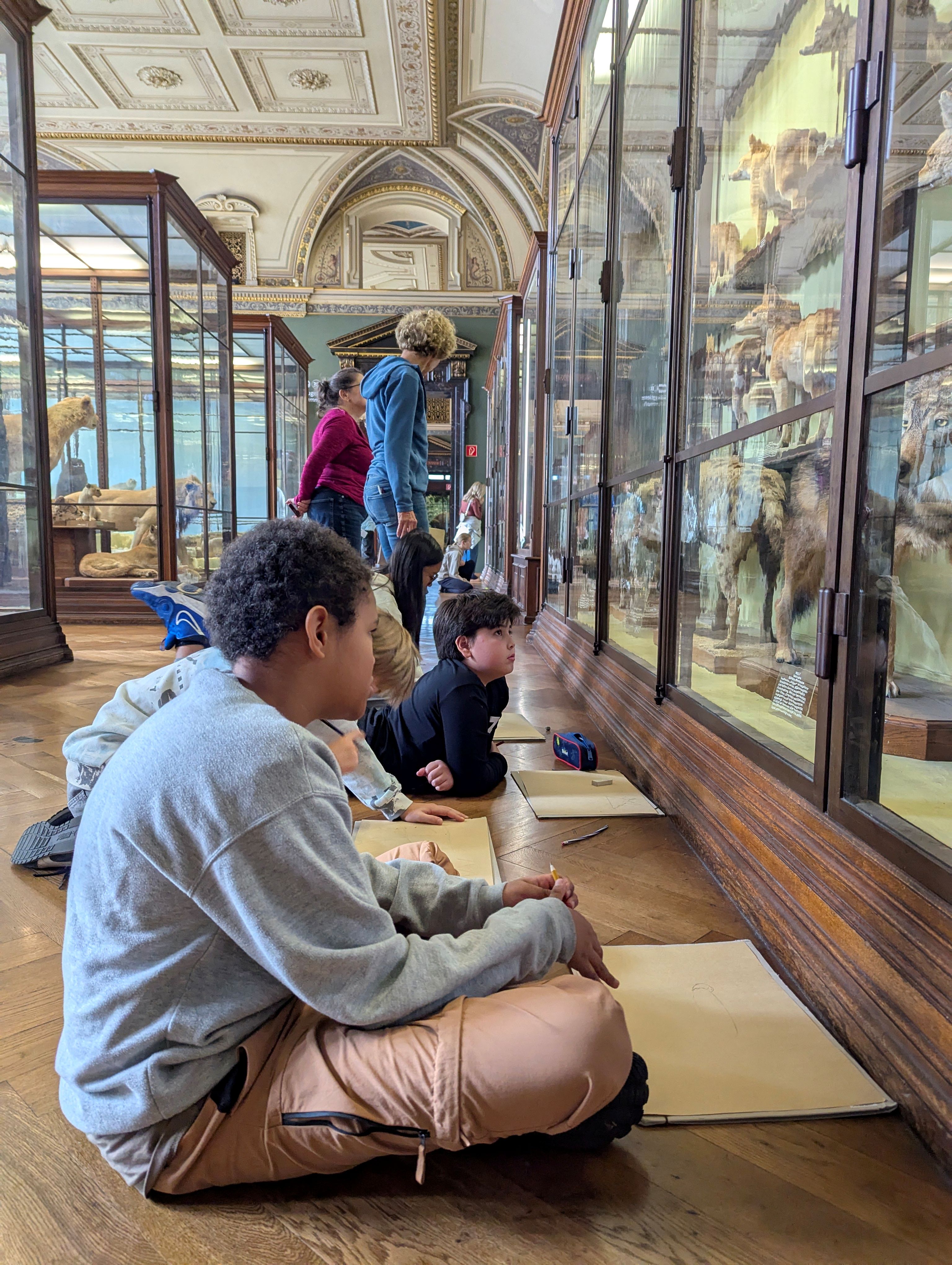 Anhand der Exponate im Naturhistorischen Museum konnte die Anatomie der selbst gewählten Tiere studiert und in Kohle, Rötel und Kreide umgesetzt werden.