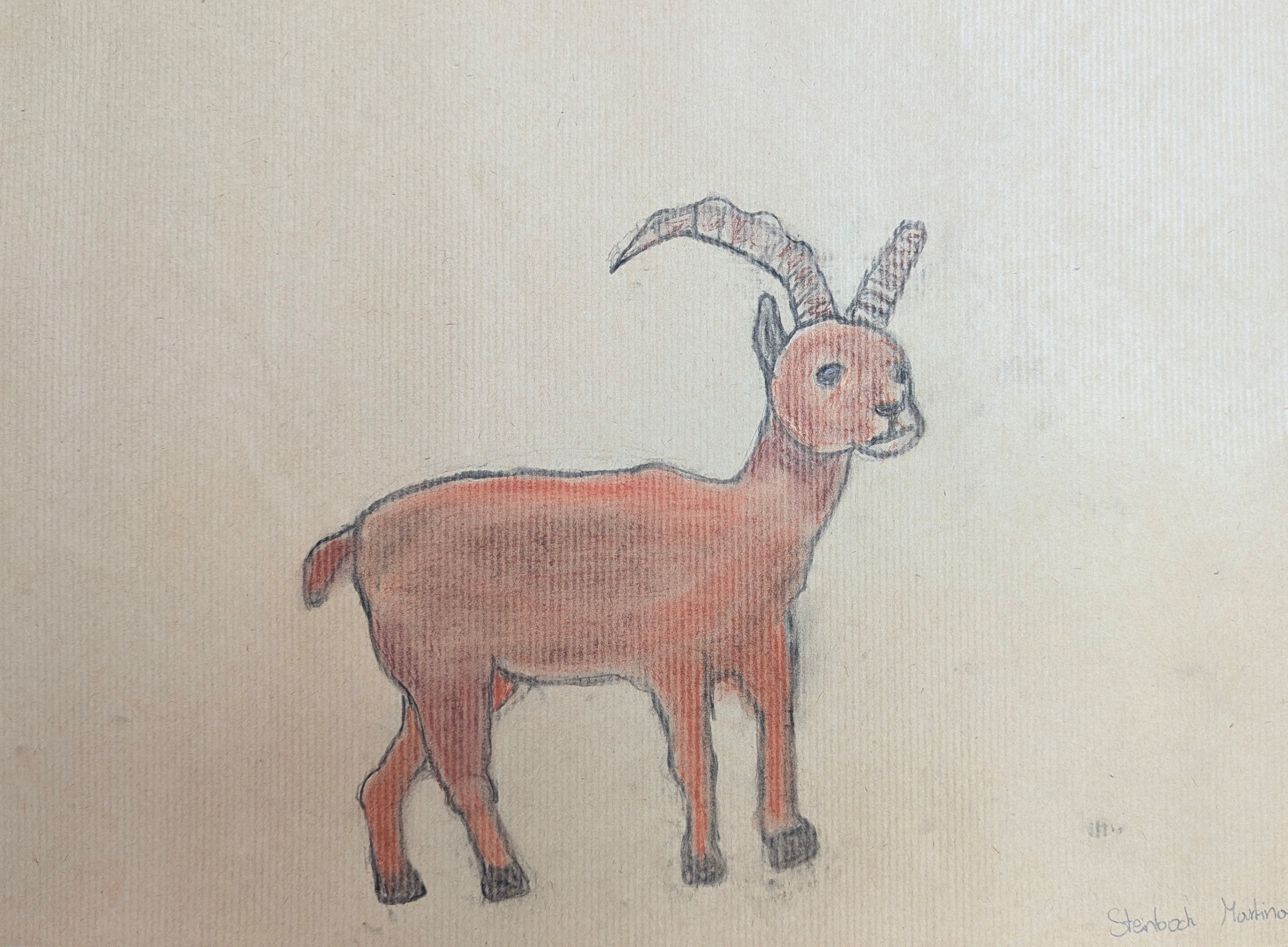 Nachdem die Schüler:innen Kunstwerke der Steinzeit kennengelernt haben, setzten sie sich mit der Beziehung von Mensch und Tier auseinander.