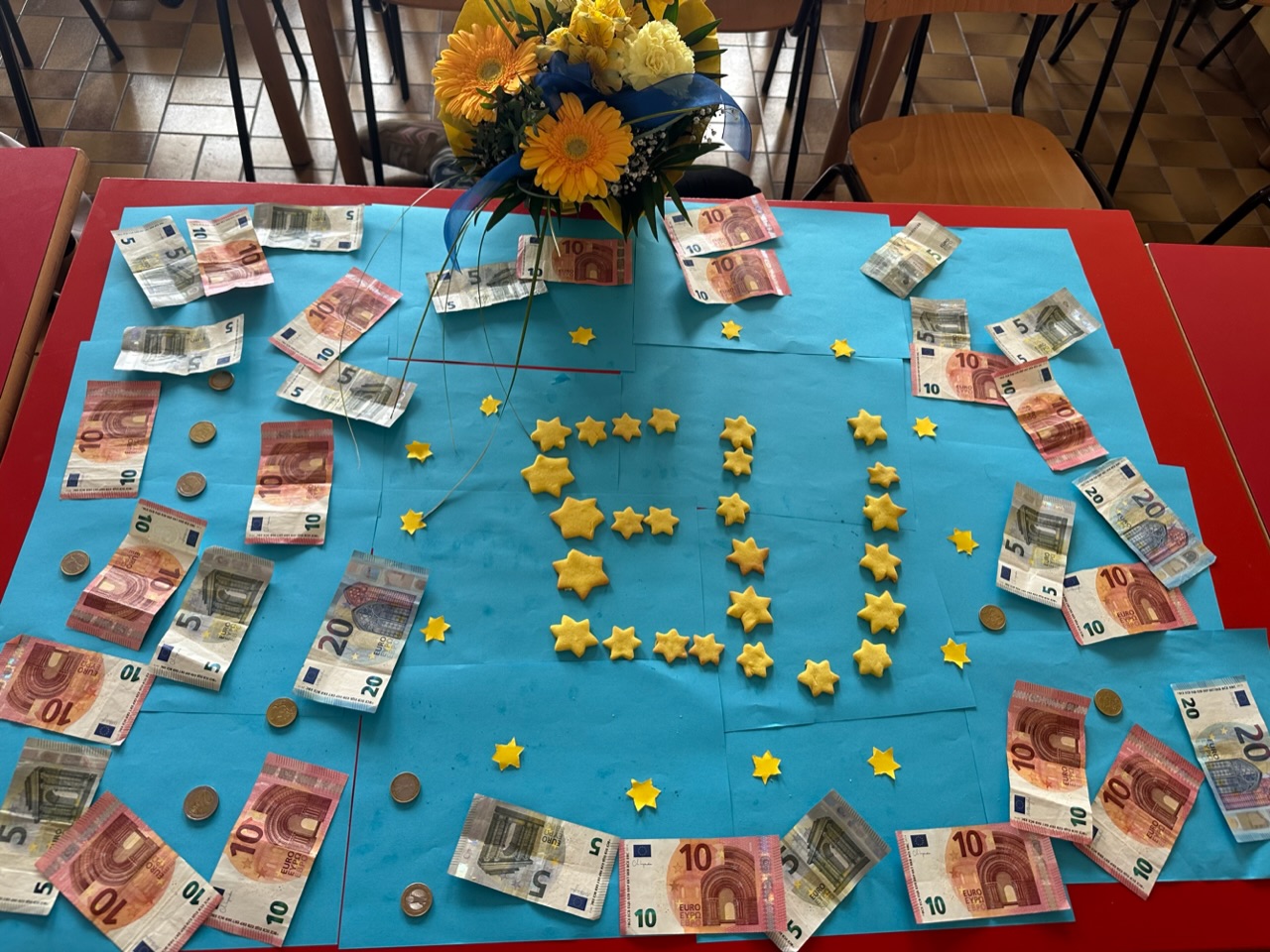 Viele Lehrerinnen und Lehrer in der 2c beschäftigen sich gerade mit der EU-Wahl am 9.6.2024. In den Fächern Deutsch, Geschichte, Geographie und Kunst und Design erarbeiten wir wichtige Themen, die unsere gemeinsame Zukunft betreffen. Im Speziellen ist uns das Unterrichtsprinzip "Finanzbildung" wichtig, deshalb haben wir den Euro genauer unter die Lupe genommen und sind auf die Merkmale des Geldscheins eingegangen. Warum auch für uns die EU wichtig ist, erfahrt ihr hier in Kürze :)