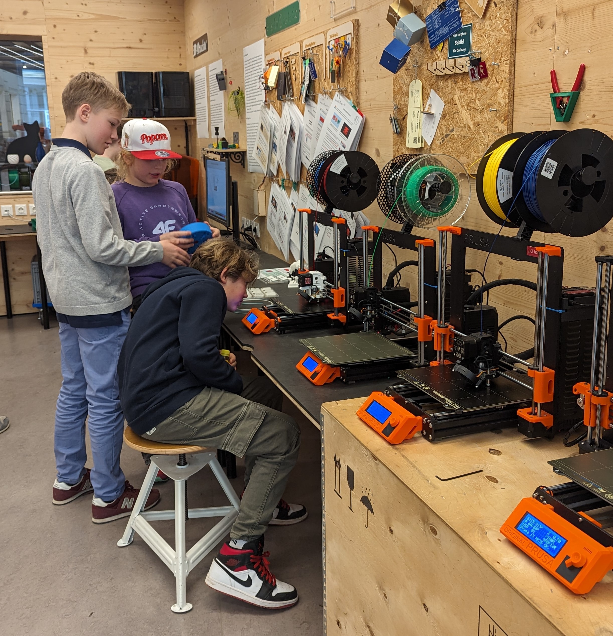 Die vielseitigen Anwendungsmöglichkeiten konnten die Schülerinnen und Schüler der 2d bei ihrem Workshop im Technischen Museum bei einem Tech Lab Training kennenlernen. Dort haben die Kinder im Maker Space Schlüsselanhänger digital entworfen und mit 3D Drucker und Lasercutter ausgedruckt und geschnitten.
