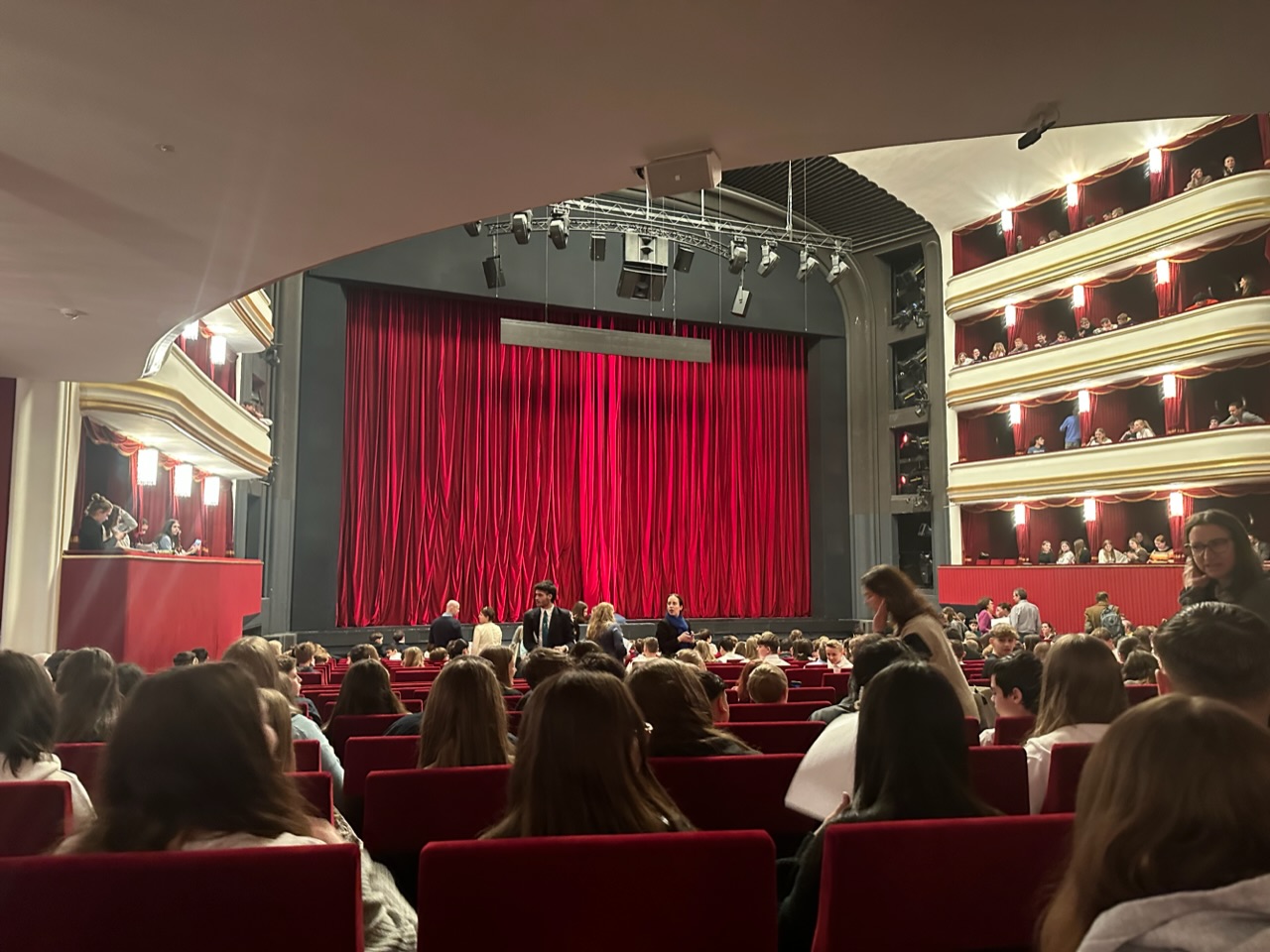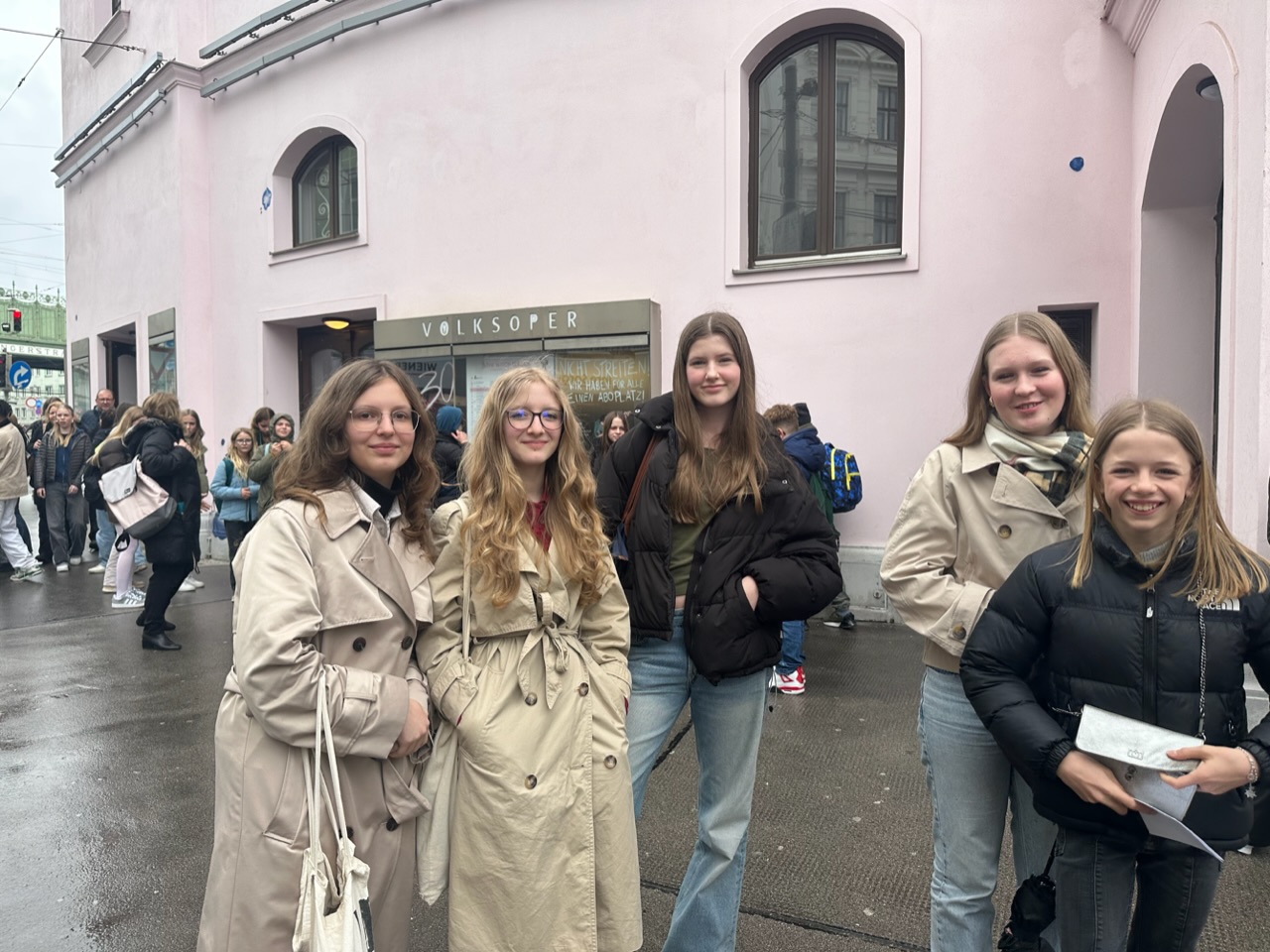 Am 24.04.2024 besuchten die 4E und die 7B um 11 Uhr am Vormittag die beliebte Schulvorstellung "The Sound of Music". Nachdem wir uns mit den Liedern "Edelweiß" und "C wie Cellophanpapier" auseinandergesetzt haben, waren wir sehr motiviert, die künstlerische Darstellung anzusehen! Uns erwarteten eine perfekte Inszenierung und ein wunderbares Orchester! Die Familie Trapp hat uns gezeigt, was es bedeutet, wenn man das eigene Land verlassen muss und sich fernab, eine neue Zukunft aufbauen muss. Trotz allem ist es unter anderem die Musik, die es in schwierigen Jahren schafft, dass die Menschen wieder mehr zusammenrücken und aufeinander zugehen!